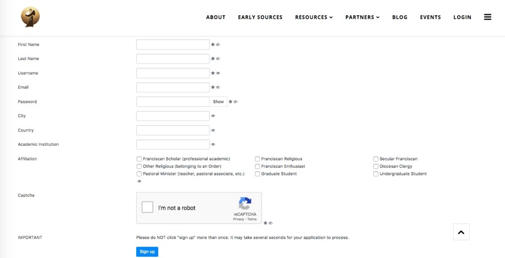 5. Check your email. You will receive an email from ‘Franciscan Intellectual Tradition’ asking you to complete your registration. Click the link in this email to confirm your registration. It will take you back to the http://www.francsicantradition.org website and tell you that you can now login.